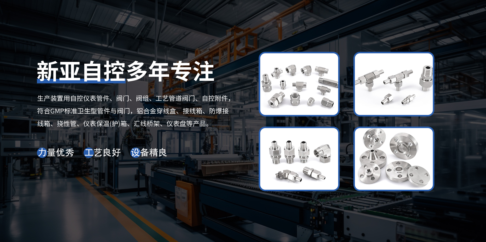 揚中新亞自控工程有限公司,成立于1995年,地處繁榮富庶的長江金三角,座落在聞名遐邇的水上花園城市、生態(tài)示范區(qū)一揚中市。東傍上海和蘇、錫、常,西臨南京,南屬鎮(zhèn)江,北望揚州,環(huán)境優(yōu)美,交通便捷,區(qū)域位置良好。公司以市場為導(dǎo)向,引進現(xiàn)代化技術(shù),發(fā)展壯大本土企業(yè),生產(chǎn)與歐、美、國產(chǎn)等裝置用自控儀表管件、閥門、閥組、工藝管道閥門、自控附件,符合GMP標準衛(wèi)生型管件與閥門,內(nèi)燃機配件、儀器儀表、橋架、五金、橡膠制品等產(chǎn)品。